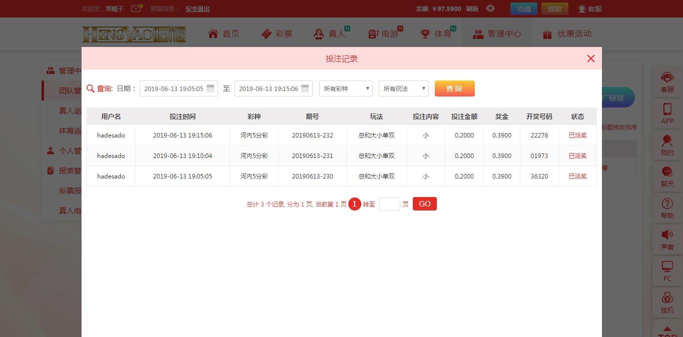 【恒耀娱乐】河内五分彩争霸赛!第007期第4天(06月13日) |